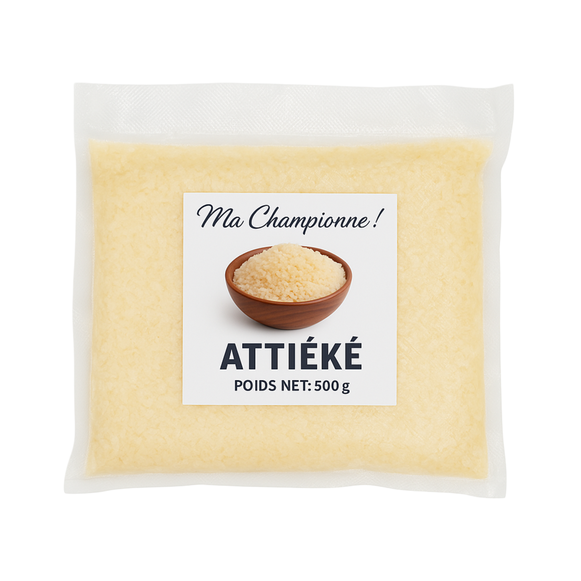 Préparé à partir de manioc soigneusement sélectionné, cet attiéké offre un goût authentique, doux et légèrement fermenté, fidèle aux saveurs de Côte d’Ivoire. Le conditionnement sous vide garantit une fraîcheur optimale, une conservation prolongée et une hygiène irréprochable.